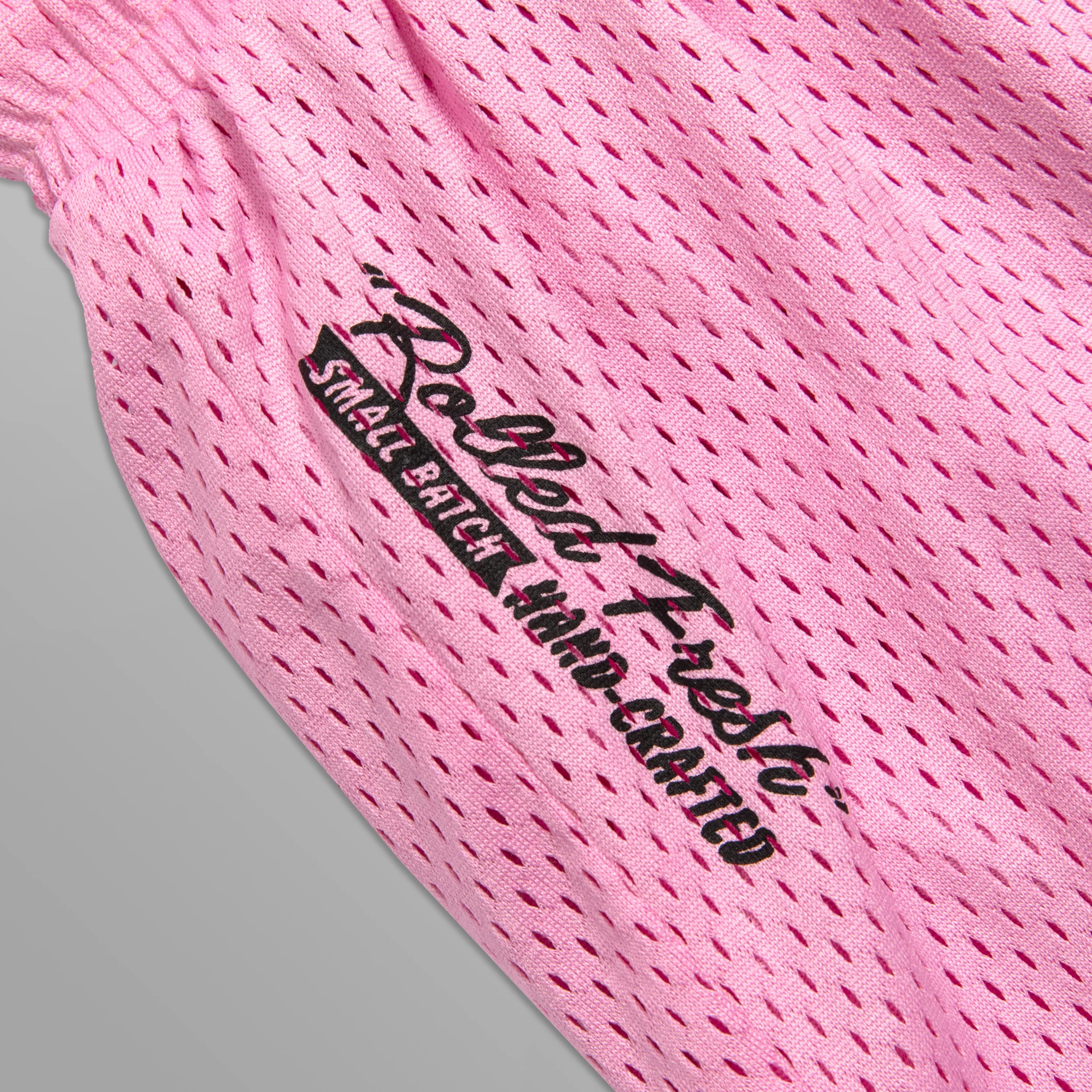 Dipped in frosting and made to move, these pink mesh shorts bring the flavor with script embroidery at the hem, a black and white trim and just the right amount of drip. Sweet, sporty, and made to stand out.