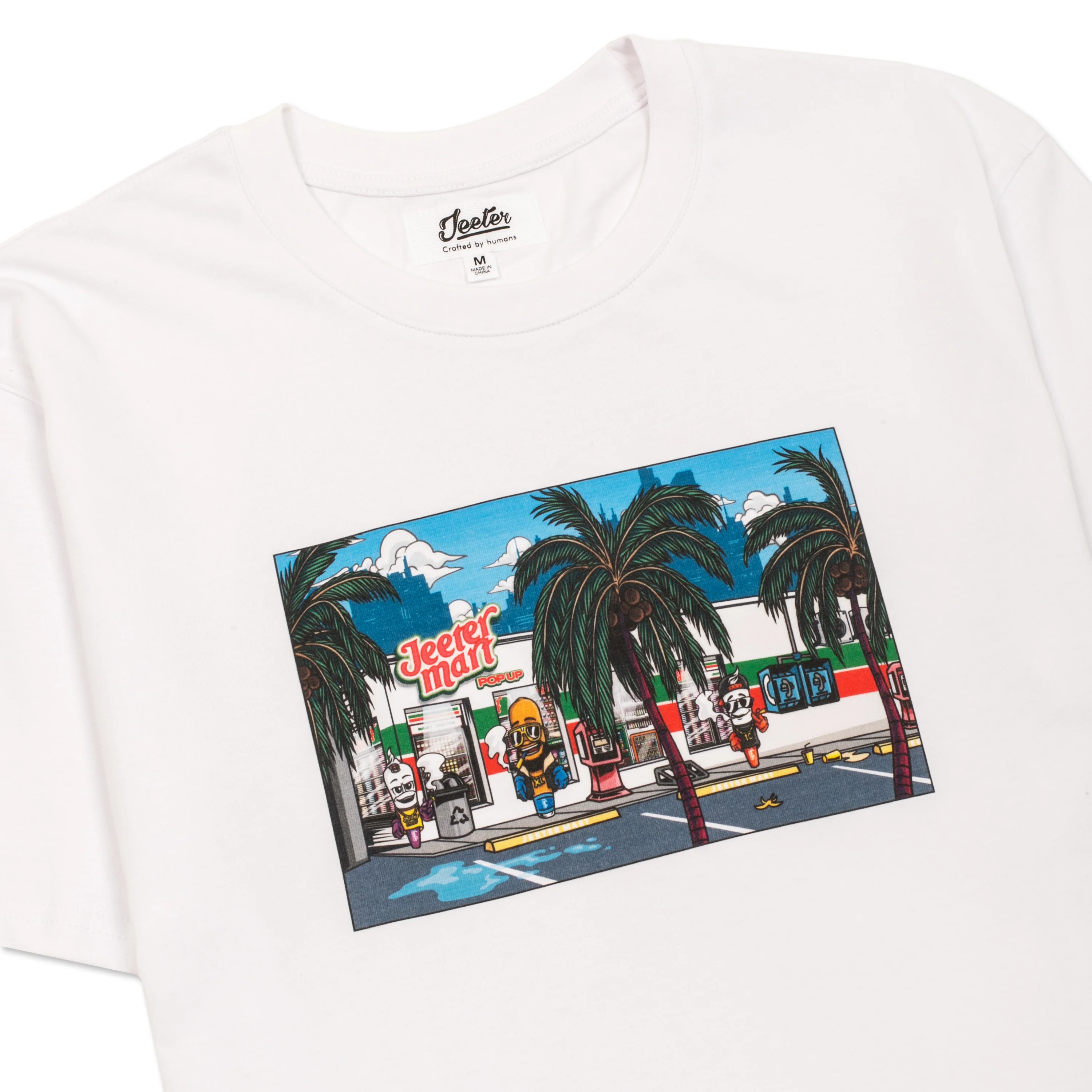 If you’re not buying anything, you can’t hang around here. Relive the days of loitering outside your local corner store with your friends with a 100% cotton tee of the Jeeter crew doing just that!Â
