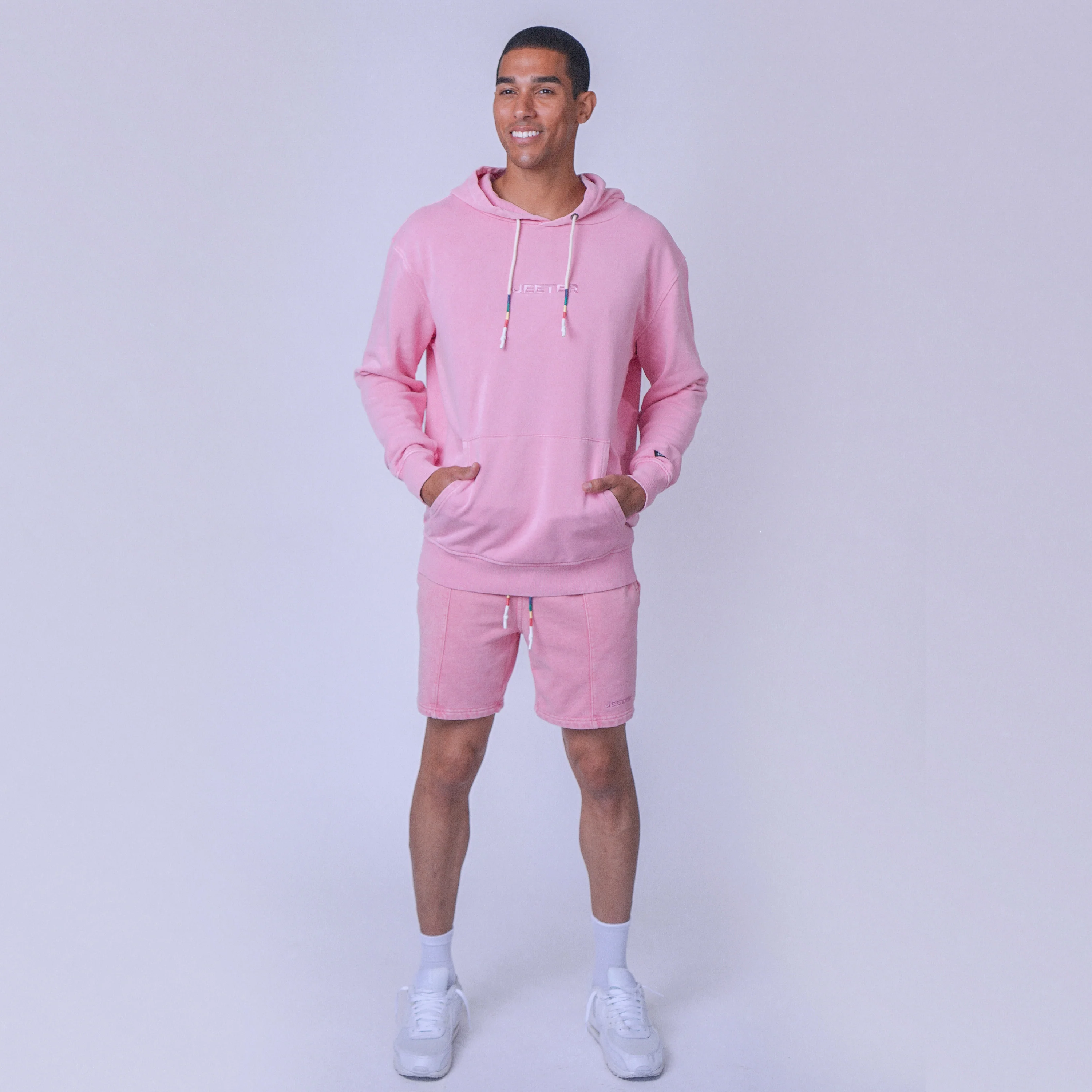 Unisex pull on shorts in loopback French terry with a heavy patina, garment-dyed "Sun-fade" wash. This dye process creates a distinct high and low color effect and ensures no two shorts are the same. This item features our corded drawcords with hand-wrapped thread and an acetate-dipped knot finish. It also features our San-serif Jeeter embroidery at center front.